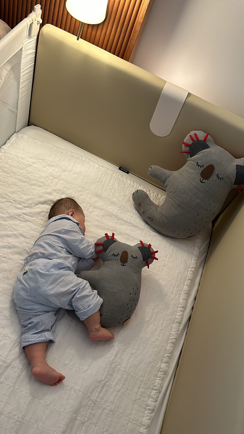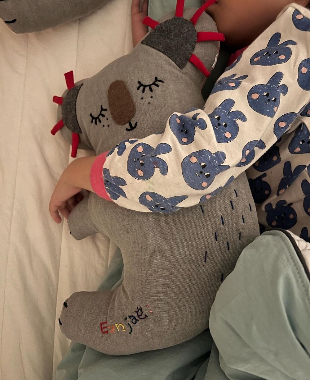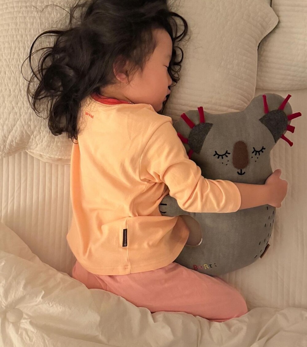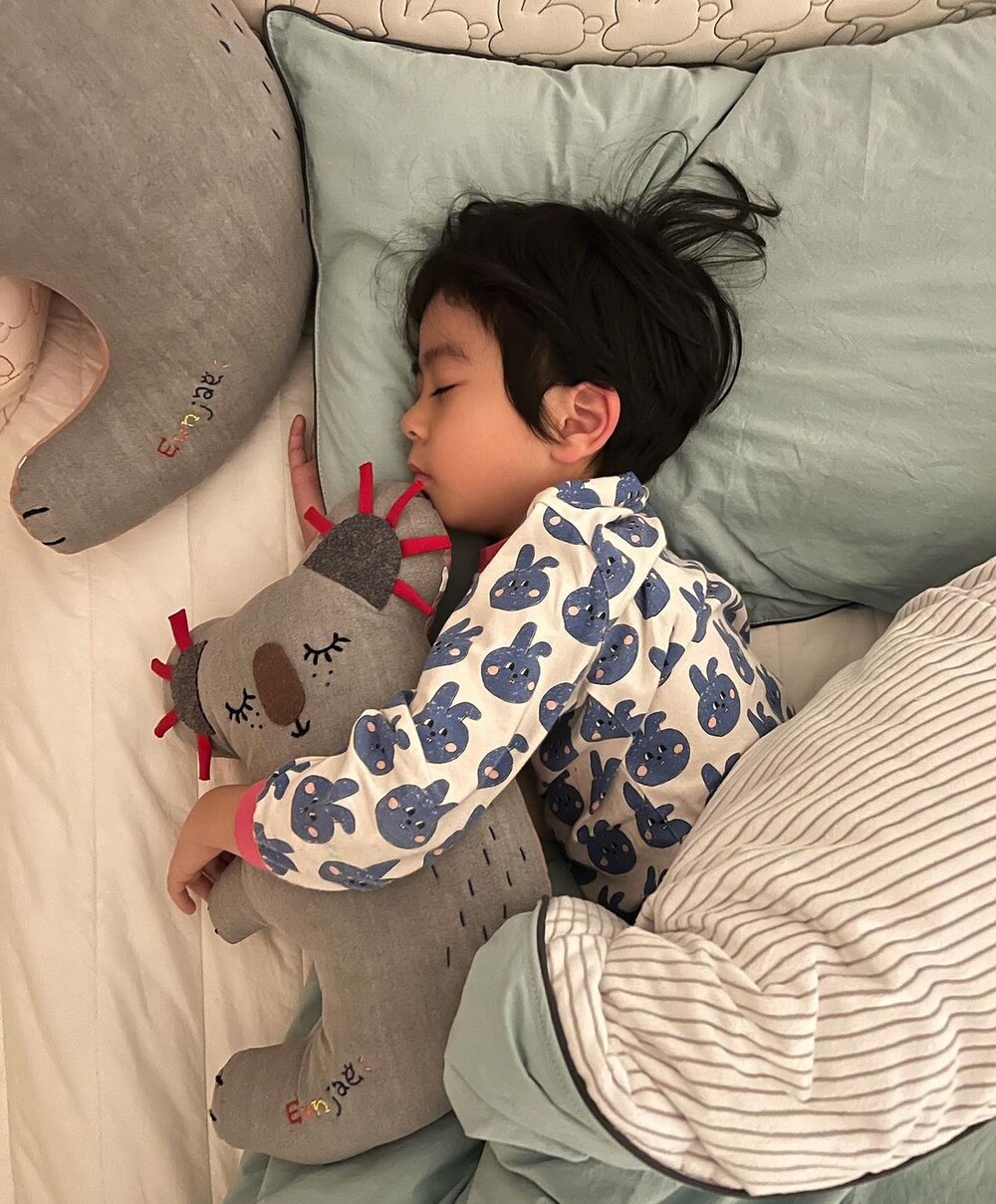 튀어나온 라벨을 만지면서 잠들었던 아이
