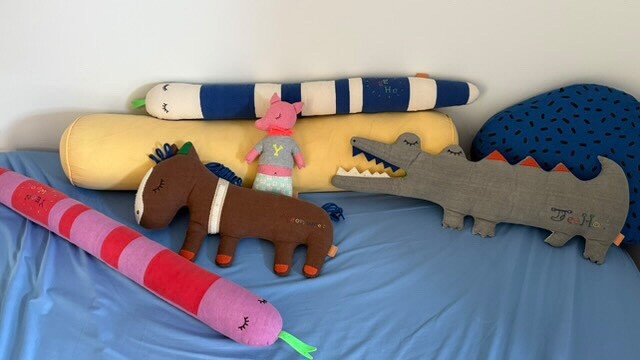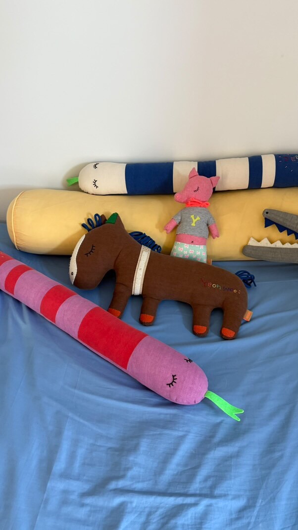 사샤의 긴- 몸통은 침대 범퍼 쿠션이나